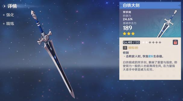大剑类武器因其高攻击力和破盾能力广受玩家青睐,但部分大剑还具备提升防御力的特性,适合需要生存能力的角色。目前游戏中直接增加防御力的大剑包括白铁大剑和钟剑,这两把武器的技能机制与防御属性直接相关。白铁大剑的基础词条提供防御加成,其特效每次击杀敌人回复10%总血量进一步强化续航能力;钟剑则通过生命值上限转化为护盾吸收量,配合防御属性形成双重防护体系。