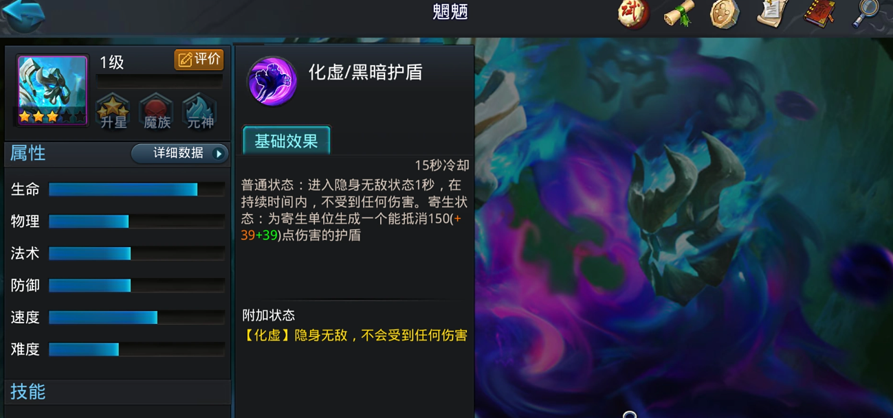 魍魉的技能分为普通状态和寄生状态两种。普通状态下,一技能化虚可以隐身1秒保命,适合用来躲避敌人集火或者找机会贴近队友。二技能暗疫能减速和减防,但伤害不高,主要用来骚扰敌人。寄生状态下,一技能变成黑暗护盾,给队友套盾吸收伤害;二技能恐惧之环能范围恐惧敌人并削减防御,团战时特别好用。大招共生是核心,附身后不仅能强化队友,自己还能自动攻击附近的敌人,相当于让队友多了一个帮手。