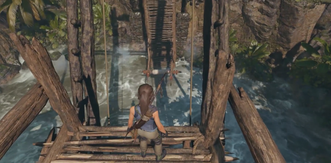 如果发现绳索箭矢没带够,可以在附近搜寻资源。秘鲁丛林的树上经常挂着补给品,用生存本能模式就能轻松找到。过桥后别忘了检查对岸的探险家背包,它能在地图上标记本区域的收集品位置,对后续探索很有帮助。
