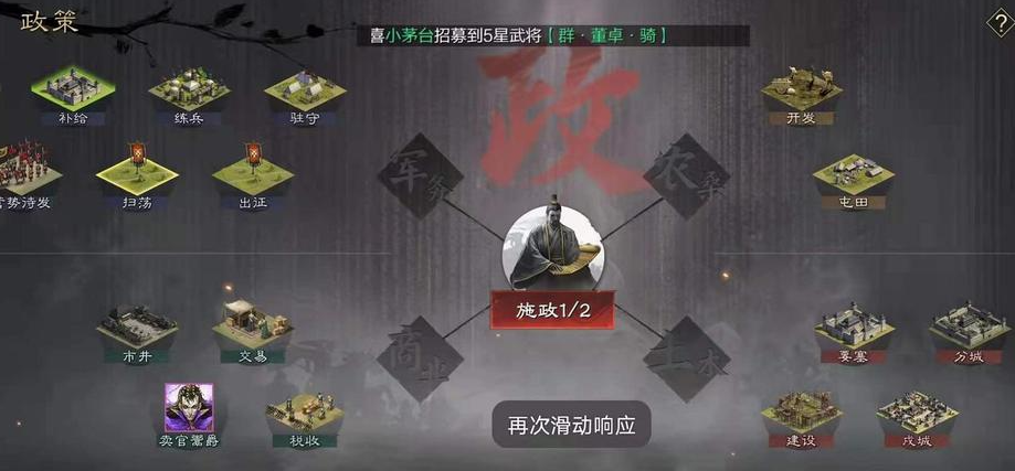 屯田是稳定获取经验与资源的双重手段。消耗政令派遣武将执行屯田指令,土地等级越高收益越显著。需注意政令每日自然恢复上限为20,可通过玉符补充但成本较高,建议优先用于高等级土地。吞噬武将可将冗余或低星武将转化为经验值,适合核心武将集中培养,但需谨慎选择牺牲对象,避免浪费潜力武将。