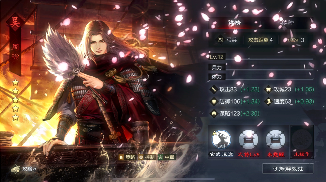 在阵容搭配上,朱治通常作为辅助或副输出手使用。由于他的战法效果依赖队友触发,建议搭配高谋略或高攻击的武将,比如周瑜、陆逊等吴国核心,形成谋略爆发队。如果走物理路线,可以配合太史慈、甘宁等武将,利用朱治的稳定伤害补足输出。注意兵种克制关系,弓兵对骑兵有优势,但需避开步兵较多的敌人。