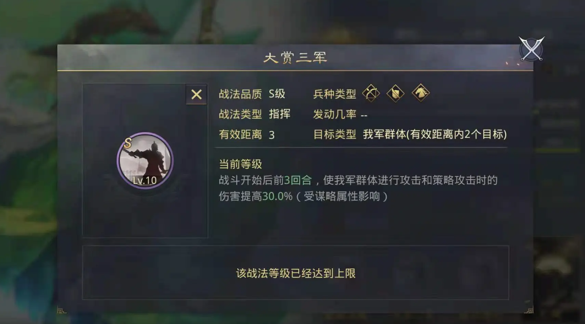 战法选择方面,朱治可佩戴增益类或减伤类技能,比如大赏三军、无心恋战等,强化队伍生存能力;若追求输出,可搭配众谋不懈始计等指挥战法,与自带技能形成联动。由于朱治速度较慢,建议优先提升谋略或防御属性,避免被敌方先手压制。