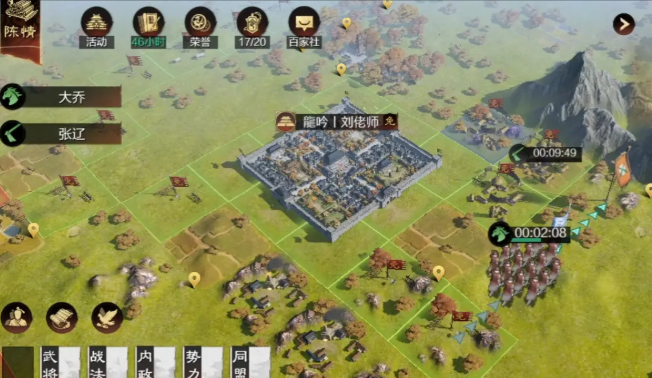 资源调配方面,石头永远是最缺的,平时多占高级石料地。升级前确保仓库容量足够,爆仓技巧是用贼兵和演武奖励卡时间点。四大营至少升到3级再考虑校场,这样部队战斗力有保障。别一次性把所有资源砸在校场上,留些备用资源应对突发战损。