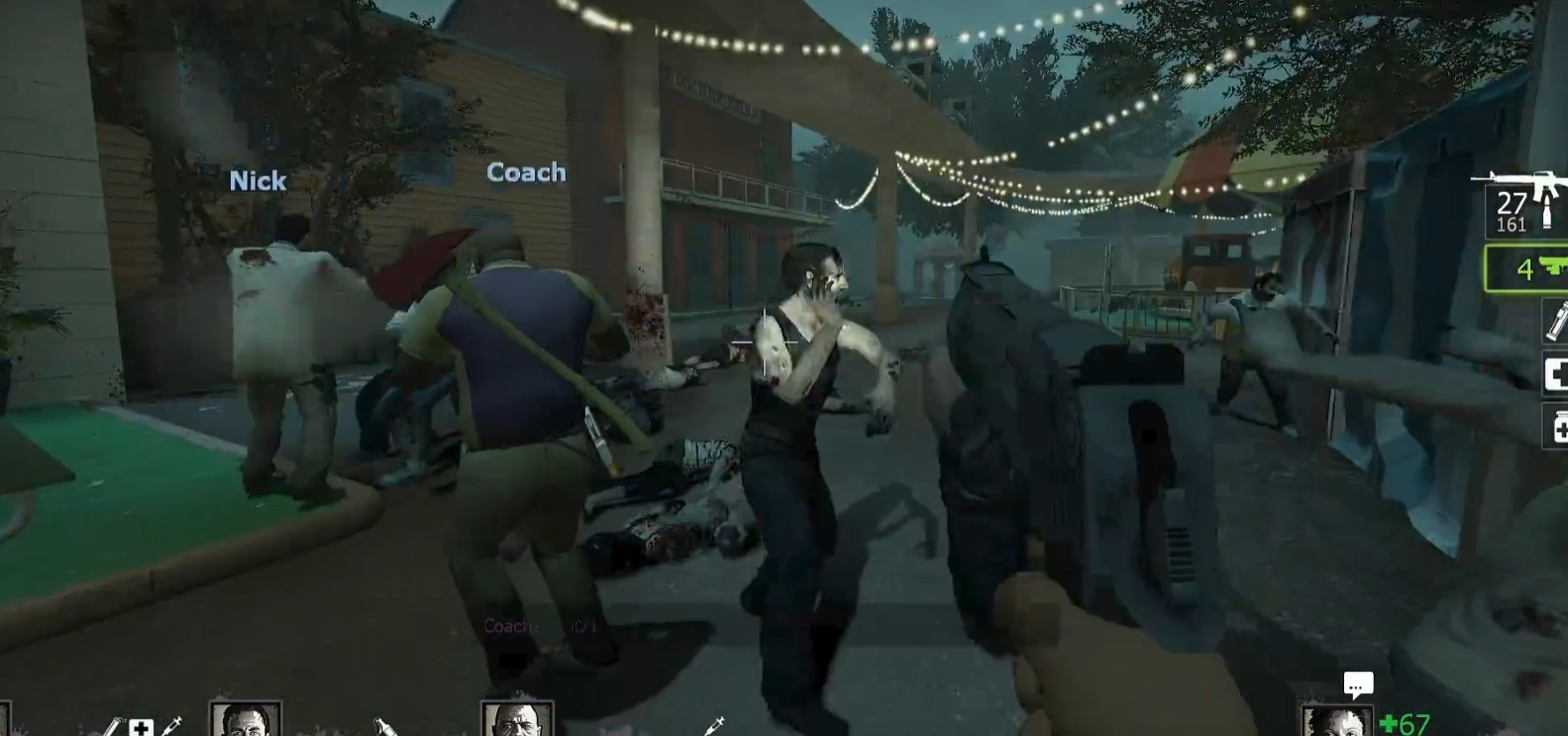 中间部分会有需要触发机关或者收集物品的环节,这时候最好两人一组行动。一个人负责开机关或者拿东西,另一个人在旁边掩护。如果听到女巫的哭声,尽量绕路走,实在避不开的话就用喷子瞄准头部快速解决。坦克出现时不要慌,找些障碍物绕着打,千万别站桩输出。