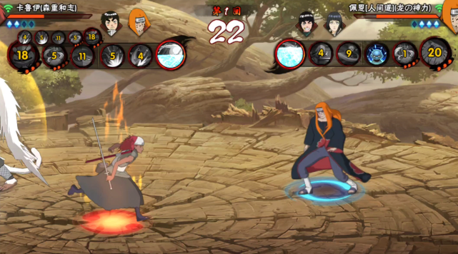 人间道佩恩的技能设计很有特色,普攻第五段有击飞效果适合连招,一技能回月轮分为短按和长按两种形态,命中后能追加斩击。二技能穿尘击同样有长短按区别,长按版本能抓取对手蓄力撕裂,技能结束后还能观察对手技能冷却情况,这个机制在对战中非常实用。奥义轮回魂破明命中后也能查看对手技能冷却,未命中则没有后续表现。