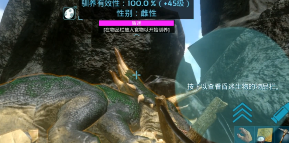 击晕过程中需密切观察三角龙的眩晕值,当其开始逃跑时需及时追击补刀。三角龙濒临昏迷时会进入眩晕状态,需迅速靠近并打开其物品栏,放入准备好的浆果或饲料。驯服进度会随时间推移逐步增长,期间需确保三角龙的眩晕值维持在一定水平,可通过喂食黑色浆果或麻醉药延长昏迷时间。驯服期间需警惕周围环境,避免其他生物干扰或攻击。