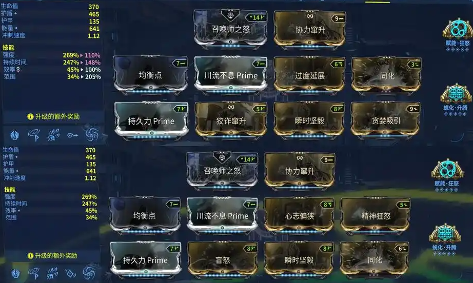 推荐给虚空锐将上红晶枪管、视差瞄具等增伤MOD,同时搭配推进器、增效MOD来提升机动性,毕竟机甲本身移动较慢,引擎消耗快,手感卡能大幅改善操作体验。如果打高难度图,可以堆肉和效率,7极化的配卡甚至能轻松应对三傻或奥影活动。别忘了机甲中间的能量条是引擎系统,冲刺和浮空都会消耗它,合理搭配MOD能让续航更持久。