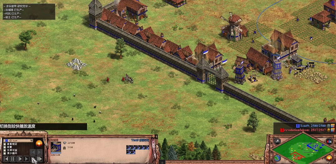 防守的核心在于资源管理和建筑布局的合理性。木材作为第一资源应当优先采集并转化为其他资源,食物用于维持农民生产和时代升级,黄金则主要用于军事单位训练和科技研发。石头资源在防守中尤为重要,主要用于建造城镇中心和城堡等关键防御建筑。经济调配必须服务于军事策略,确保在敌人进攻时能够迅速响应。黑暗时代至封建时代需要保持7-12名伐木工,16-18名农民负责食物供应,黄金采集则根据战术需求灵活调整。城堡时代后应当分散资源采集点并重点保护黄金矿区,第一个城堡的选址需优先考虑控制资源区域。