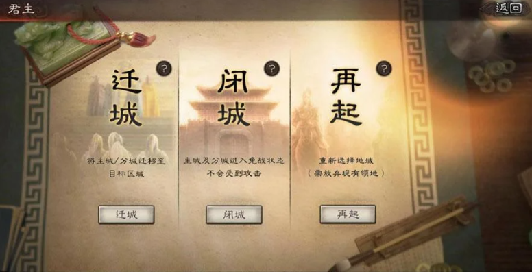 除了入城,还有一个关键功能是闭城。这个操作不是针对单支部队,而是对整个城池进行。你需要在政厅的君主界面里找到并点击闭城选项。确认后,你的主城会开始进入免战状态。但要注意,闭城不是马上生效的,它有一个准备期,期间你的部队仍然能被攻击。成功闭城后,所有外出的部队会自动撤回城内,并且在接下来的一段时间里,你的城池完全免疫攻击。闭城期间你同样无法发布任何行军或出征指令,而且每次闭城结束后得等很久才能再次使用,所以得谨慎选择时机。