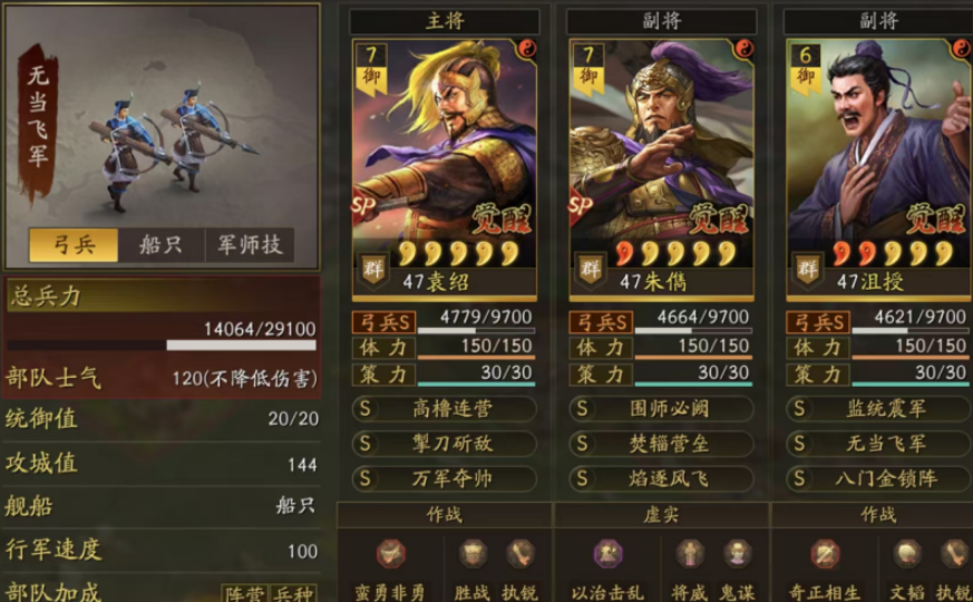 SP朱儁非常适合融入以群雄弓兵为核心的体系。因为他自带强大的谋略减伤和稳定输出,所以能和很多群雄武将形成配合。一个常见的思路是把他和同样非常稳定的SP袁绍组合在一起,再搭配一名治疗武将,比如华佗,这样可以组成一支有输出、有减伤、有恢复的扎实队伍。另外一个很重要的搭配方向是考虑和沮授联动,因为沮授的战法可以延长负面状态持续时间,这能让SP朱儁的叛逃和减伤效果覆盖更久,从而让整个队伍的战斗力提升一个档次。