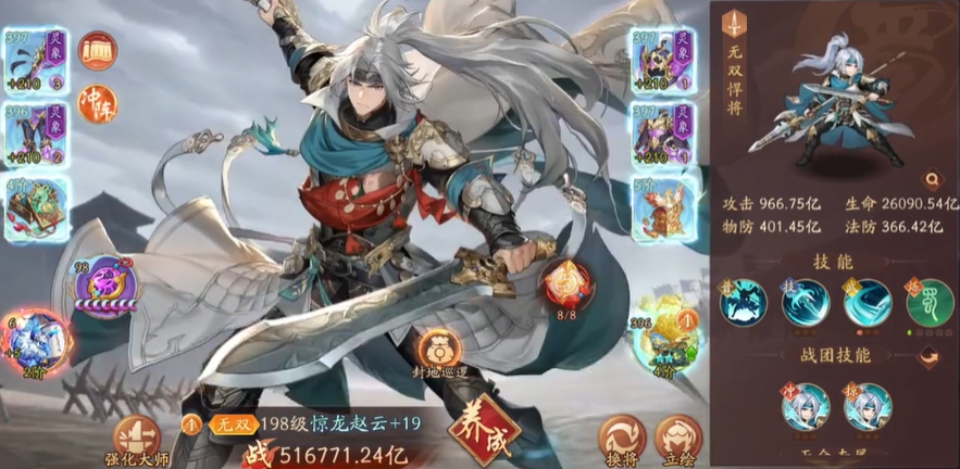 蜀国核心输出武将的选择直接影响阵容上限。赵云作为主力输出,其技能附带高概率回怒效果,配合龙威的眩晕控制能有效压制敌方一列单位。张飞则提供稳定的前排抗伤能力,同时具备可观的物理输出和眩晕控制。刘备作为辅助核心,不仅能提升全队攻击力,还拥有治疗和减怒效果,是蜀国阵容的润滑剂。庞统作为治疗武将,在回血同时提供怒气回复,与输出武将形成良性循环。