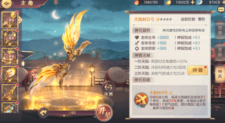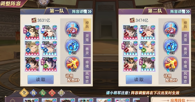装备强化和神兵培养是中期提升战力的重要手段。建议先把主力武将的装备精炼到+15左右,神兵选择要配合你的阵容特点,比如主打爆发的队伍可以优先培养弓类神兵。每天记得用元宝买满体力和精力食盒,多余的资源可以投入到将魂录和战魂系统中。战魂搭配很讲究,前排武将适合连携加护,输出武将则更适合爆裂冲击这类增加伤害的战魂。