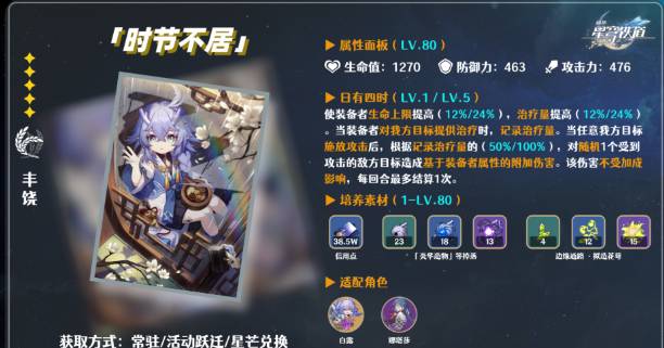 光锥选择上,五星推荐白露专武时节不居,兼顾生命值提升和治疗量转化伤害;四星优选一场术后对话或同一种心情,前者加速能量循环,后者提供群体回能效果。遗器套装首选云无留迹的过客4件+不老者的仙舟2件,主词条优先治疗加成、生命值和速度。注意将速度堆到120以上可激活仙舟套的全体攻击增益,进一步提升团队收益。