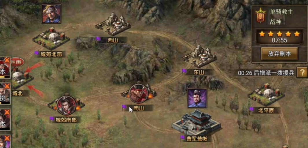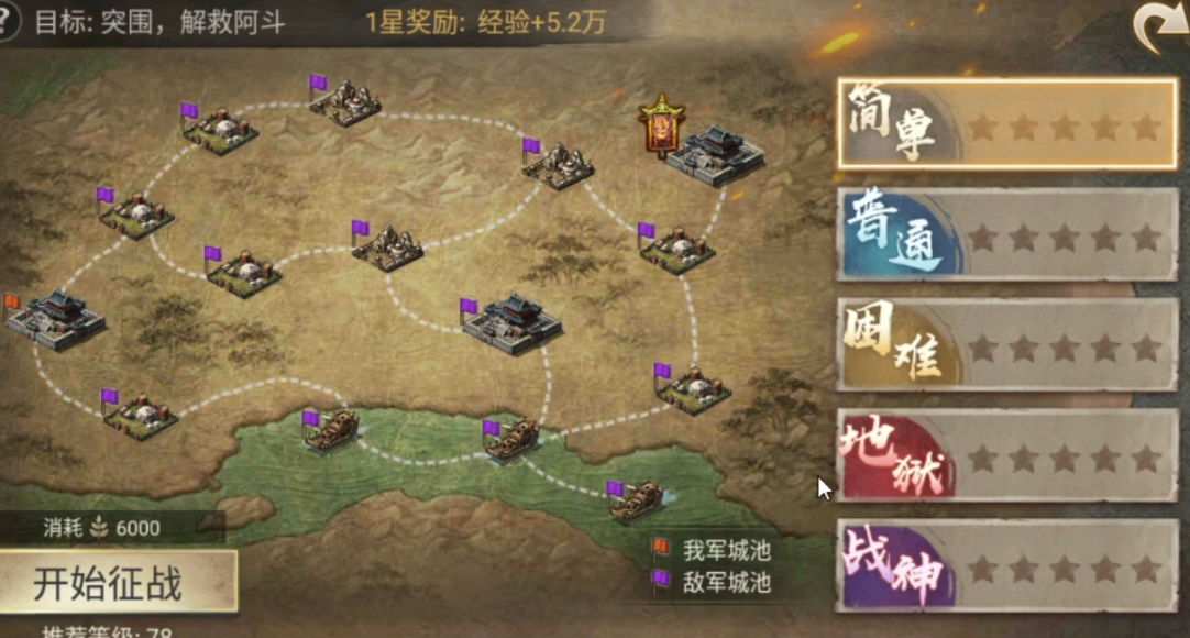 地狱和战神难度新增NPC事件,如解救甘夫人或主城水域任务。地狱难度下,可在攻占曹军营帐后分兵完成解救事件,但需注意奖励领取时机,避免过早触发防御削弱。战神难度则需放弃部分事件以节省时间,例如直接放弃甘夫人路线,集中兵力从长坂城南突进。所有难度下,时间奖励的领取顺序至关重要,建议在主城攻占后再统一领取,以确保五星通关。