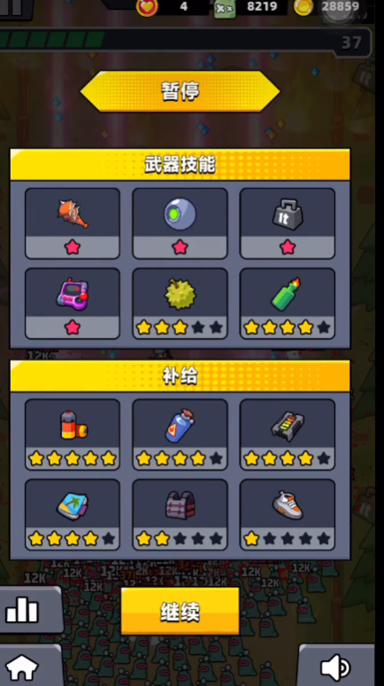 第30关最头疼的就是5分钟开始的那波混合双打,火龙和野猪会同时出现,这时候咱们的装备如果还没成型就容易翻车。建议开局先用棒球棍过渡,它的击退效果能帮咱们争取发育时间,记得第二分钟的技能宝箱先别急着吃,等凑齐超武合成条件再拿。走位方面最好固定在小范围转圈,这样掉落的补给品会集中在一起,关键时刻捡炸弹清场特别方便。