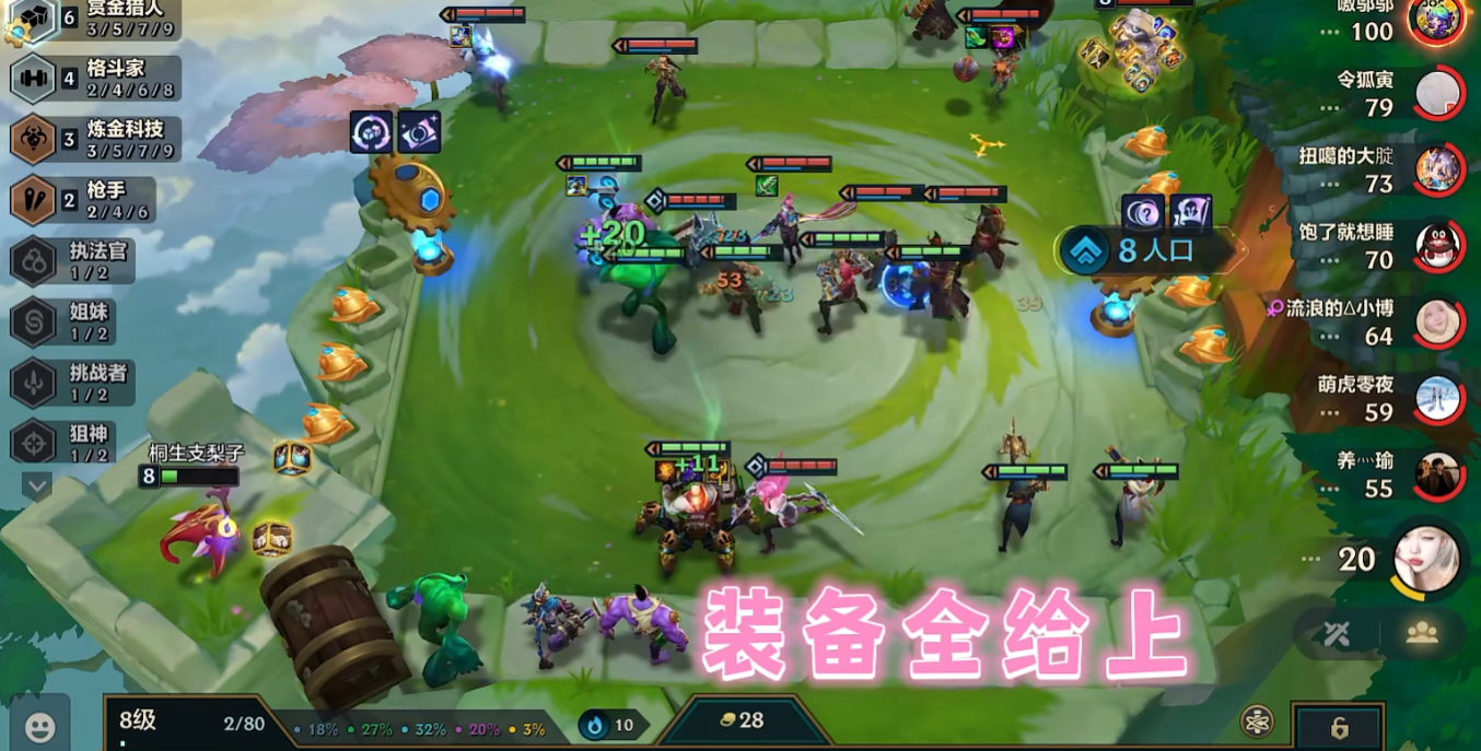 后期目标是转型为高费卡阵容,8级后开始搜杰斯、金克丝等五费卡。塔姆是核心前排,喂法强装能快速秒人,蒙多则带肉装扛伤害。赏金羁绊在后期可以逐步替换为其他强力五费卡,比如猫咪、加里奥等。记得保留格斗家或枪手羁绊维持阵容强度,如果有妮蔻可以直接追三星五费卡。