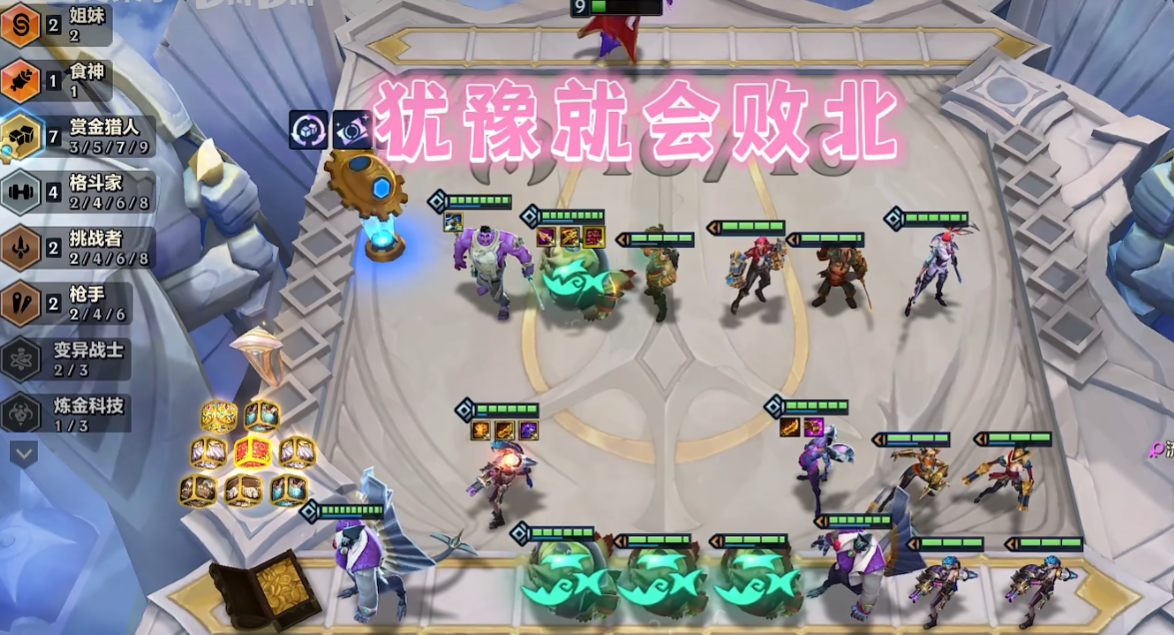中期运营要灵活调整,3-2阶段升6级后可以尝试凑5赏金,但别强求,经济和血量更重要。装备优先给船长或女枪打工,物理装给船长,法系装给女枪。如果拿到赏金转职或相关海克斯强化,可以更快成型5赏金。7级时重点提升整体质量,找塔姆、蒙多等4费卡锁血,同时利用赏金的经济优势快速拉人口。