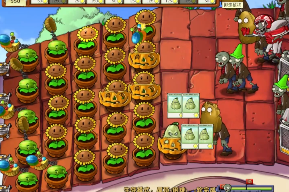 中期要注意补充防线,特别是被破坏的高坚果要及时补上。这时候阳光应该比较充足了,可以在每行都种上西瓜投手,形成稳定的火力网。如果遇到大批跳舞僵尸带着小弟冲过来,别犹豫直接放个辣椒或者樱桃炸弹清场。记住留点阳光应急,别把所有阳光都用在种植物上。