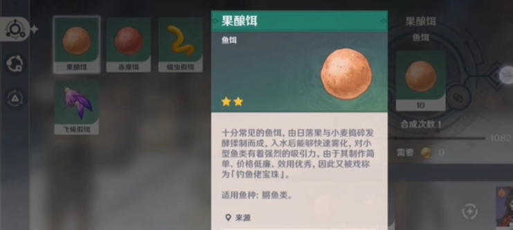 游戏初期获得鱼饵是开启钓鱼玩法的关键步骤,玩家需要先完成前置任务鱼群大爆发以解锁钓鱼系统。该任务要求冒险等级达到30级并解锁尘歌壶功能,完成后系统会自动赠送基础鱼饵果酿饵的配方。玩家可前往蒙德城的钓鱼协会,与NPC楠塔克对话兑换其他鱼饵配方,包括赤糜饵、蠕虫假饵和飞蝇假饵,兑换需消耗特定数量的鱼类或材料。