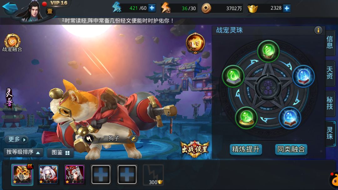 乱斗西游2千里眼的核心搭配为阵容选择千里眼、魍魉、菩提祖师的组合,装备优先法术暴击与冷却缩减套装,经文搭配幻影、罗睺、法华、罗刹、法相,法宝选用高释放速度的攻击型法宝,这套搭配能最大化发挥千里眼大招复制伤害的机制,在篝火、对战、帮派副本等场景都能打出稳定高额输出。