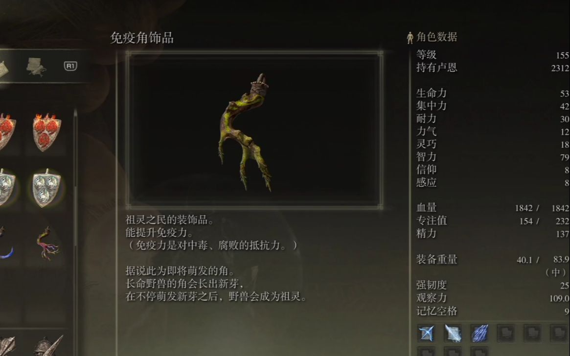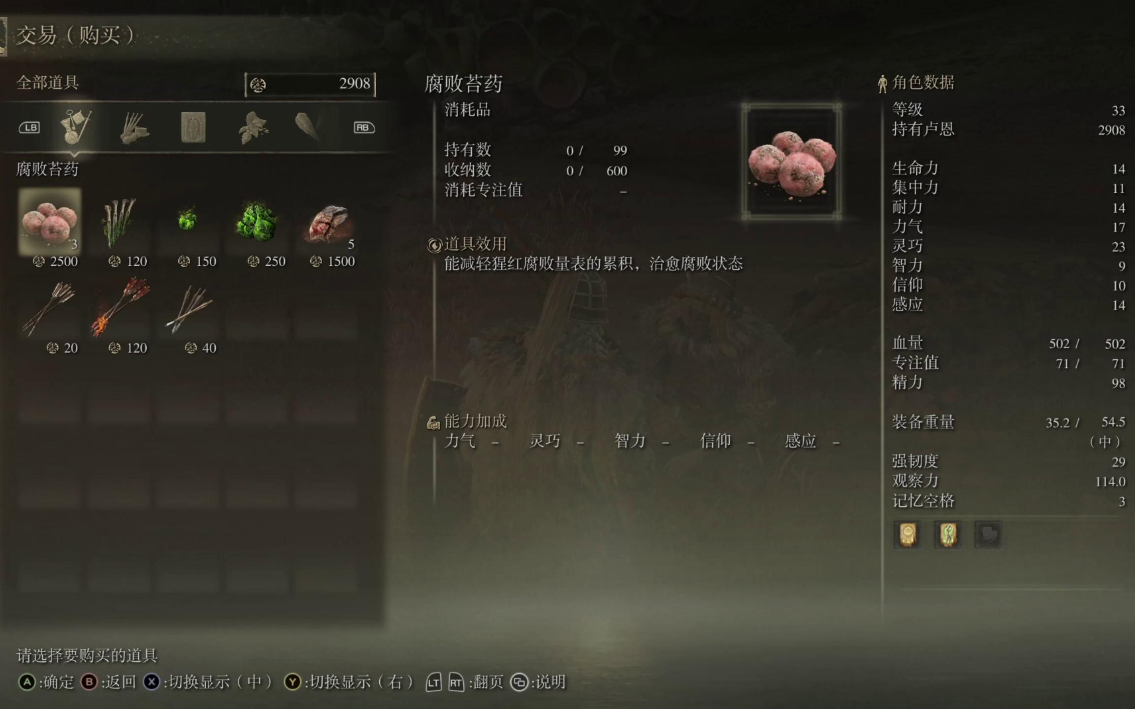 肥皂是一种功能特殊的消耗品,主要用于清除角色身上累积的污渍和降低毒素类异常状态的累积速度。该道具可通过希芙拉河区域的见弃商人购买,价格为400卢恩,或通过流浪战士的制作笔记17解锁制作配方。其核心机制在于中断环境毒素的持续附着效果,例如当玩家穿越腐败湖或毒沼后,即使离开污染区域,毒素仍会因残留污渍继续累积,使用肥皂可彻底清除污渍,避免毒素被动叠加。