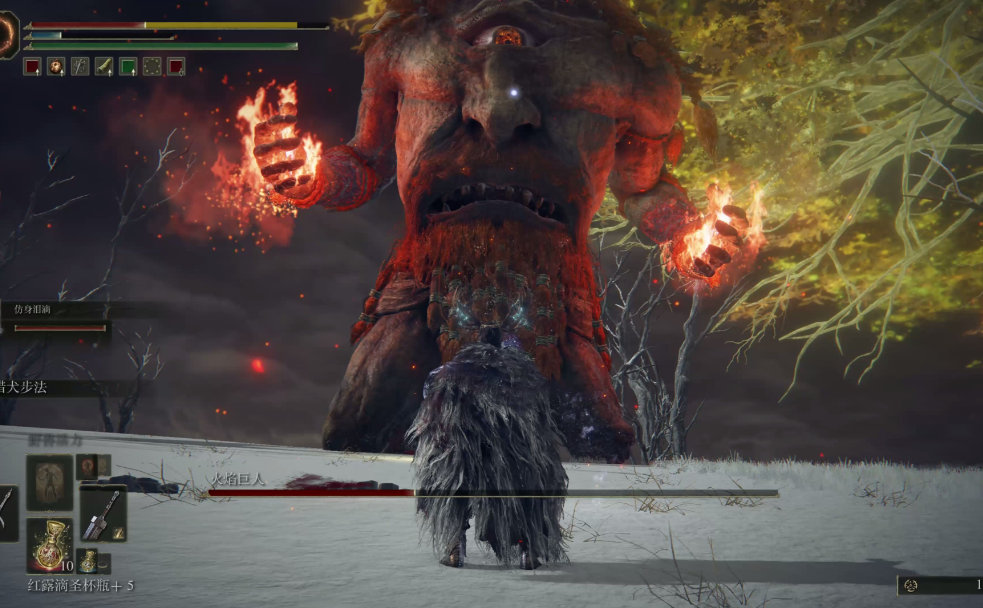 从王城前往雪山需传送到大道旁露台赐福点,沿左侧路径前进至升降台。击败该区域的骑士精英怪后,乘坐升降台可抵达巨人山顶。此处环境恶劣,暴风雪会大幅降低能见度,建议优先点亮赐福点并获取地图碎片。火焰巨人作为该区域核心Boss,其战斗场地位于地图北部的火焰大锅,击败后需与梅琳娜互动触发烧树剧情,从而解锁通往法姆·亚兹拉的传送。