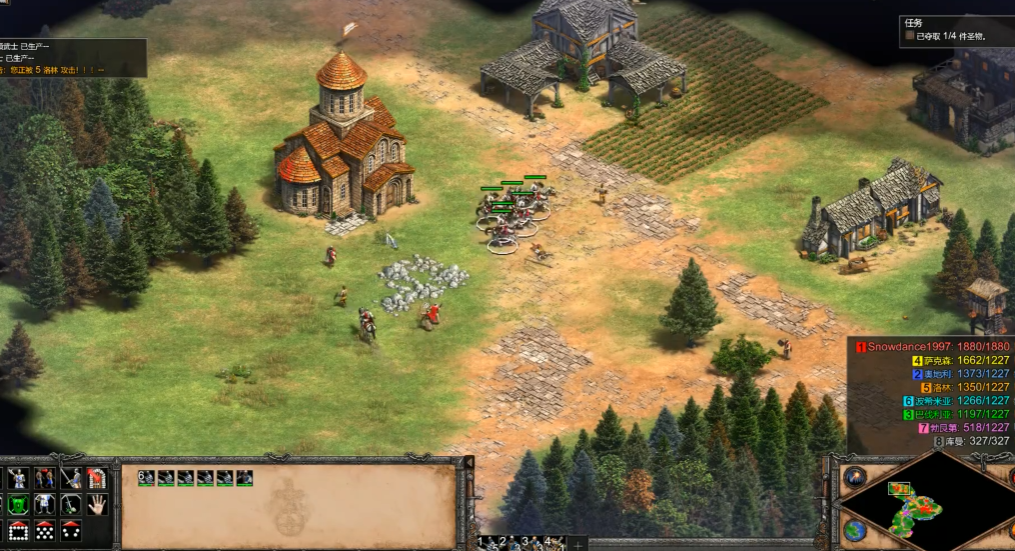 游戏后期的挑战主要来自剩余的奥地利与萨克森势力,它们构成了较大的威胁。奥地利在东北角拥有一座会持续产出条顿武士的城堡,建议先用骑兵吸引其火力,再集中投石车将其摧毁。萨克森则拥有完整的城防体系,攻克时需先用攻城武器拆除外围的箭塔,再派步兵清理内部的建筑。如果选择通过收集圣物获胜,则在游戏早期击败勃艮第后,就应派僧侣将其修道院中的圣物运回己方的修道院。在整个游戏过程中,维持充足的农民数量以保证资源、尤其是黄金和食物的持续供应,是支撑长期军事行动和科技升级的根本。